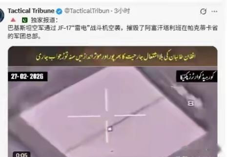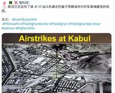 27日凌晨,巴基斯坦空军的F-16、JF-17"枭龙"战斗机呼啸升空,直扑阿富汗境内。喀布尔市区传来剧烈爆炸声,坎大哈、帕克蒂亚省的军事目标接连被炸。巴方公布的视频显示,夜空中火光闪烁,阿富汗塔利班的两个军团总部、一个美械弹药库、一个前线指挥部全部被摧毁。